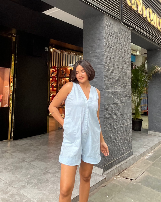 Powder Blue Linen Jumpsuit